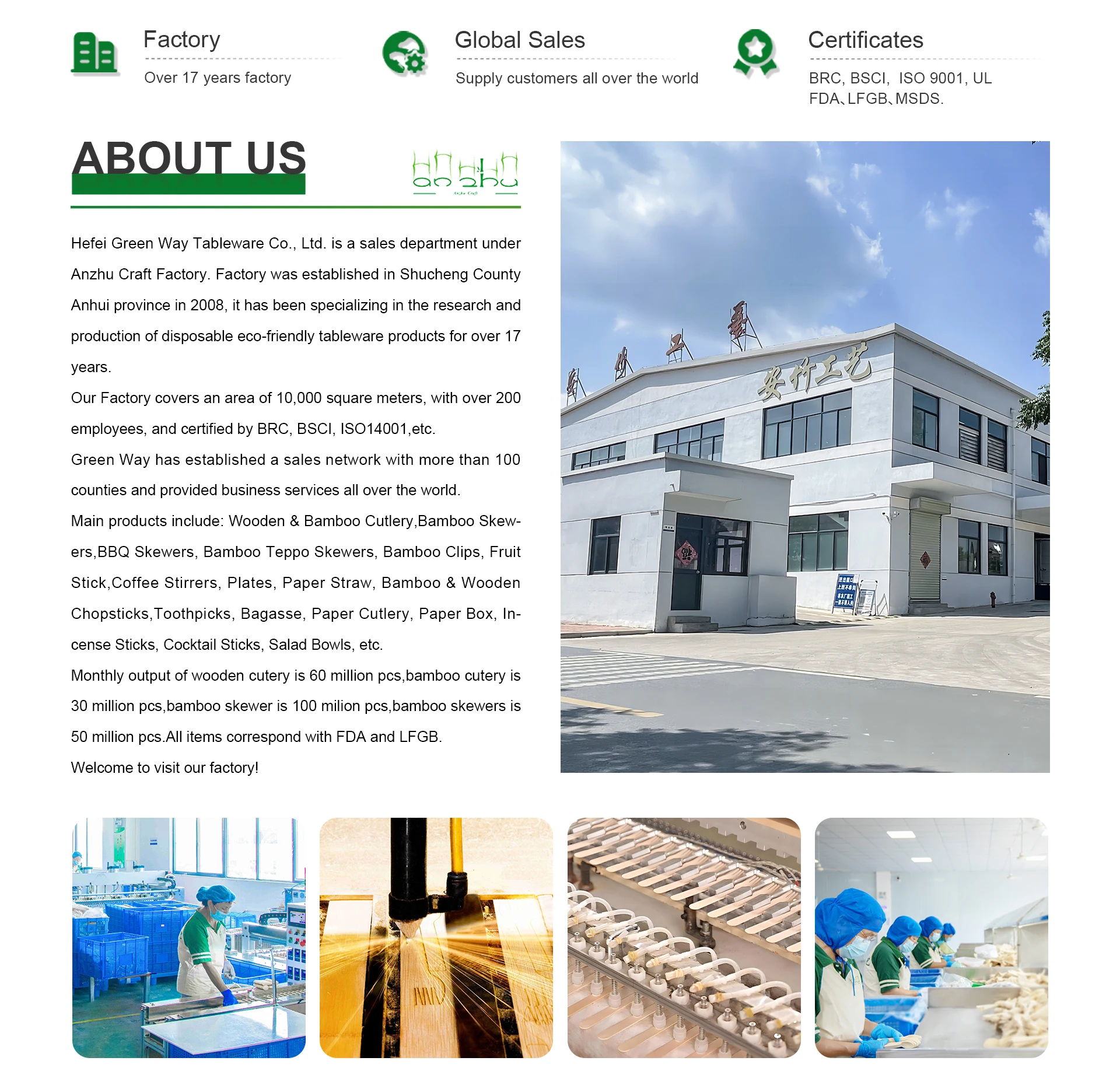 主な製品:木製 & 竹カトラリー、紙ストロー、竹 & 木製スティック、コーヒースティック、使い捨て食器